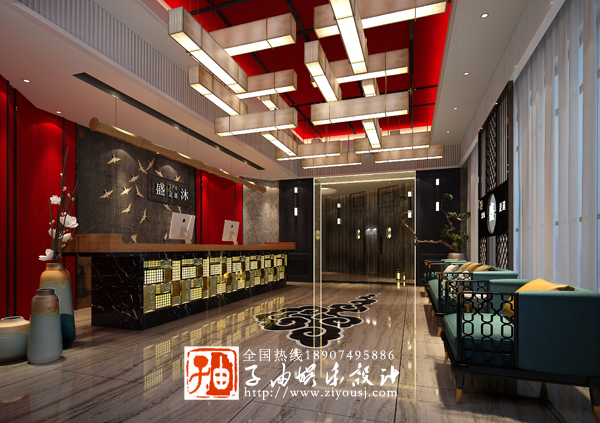 華盛足浴SPA館位於華盛大酒店三樓,整棟建築共八層,一樓酒店大廳,二樓華盛蜜桃AV无码国产在线,三樓華盛足浴SPA館,四至八樓酒店客房,其中二樓足浴占地麵積1600平方,總共36間包廂,華盛蜜桃AV无码国产在线是水蜜桃视频在线观看免费設計蜜桃AV无码国产在线公司2016年設計的,投資方對當時的設計特別滿意,有了華盛蜜桃AV无码国产在线設計做鋪墊,也基於雙方的信任,所以足浴SPA設計就特別順利,華盛足浴SPA館采用新中式風格,色彩鮮豔,中國紅,花布蘭牆布在大理石光滑材質襯托下驚豔而溫馨,大量水墨字畫蘊含強大文化氣息,讓雅調貫穿整個足浴SPA空間。